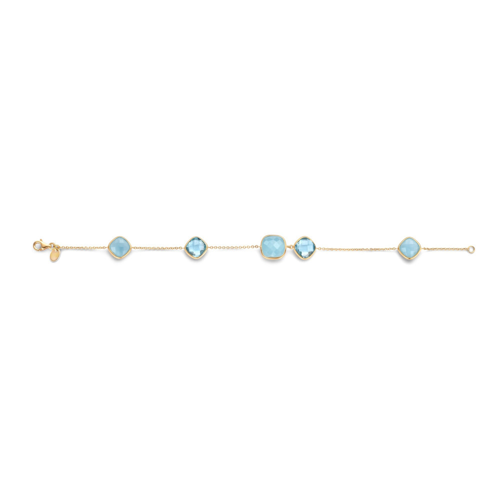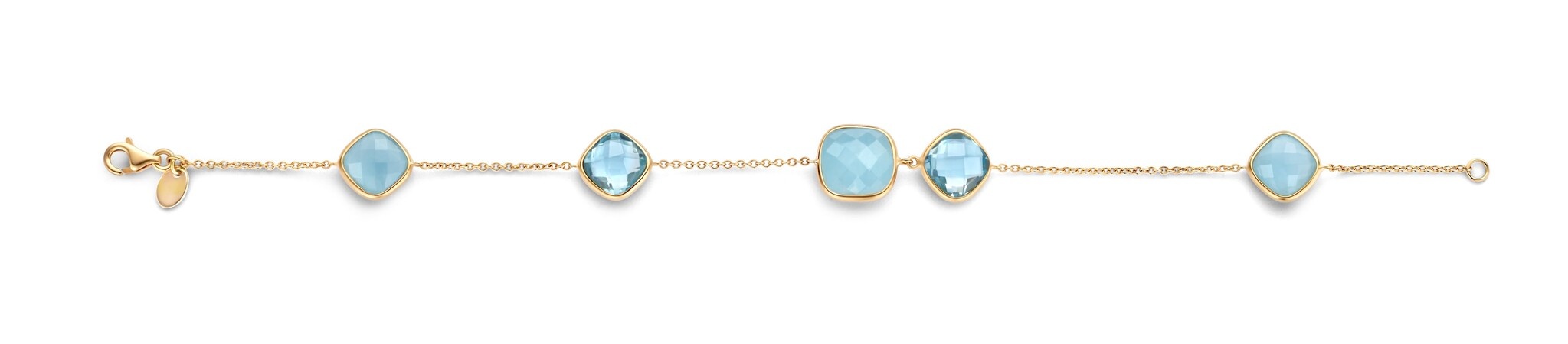Artikelnummer: 4Y.7421.AQS.TOHet Nederlandse juwelen merk Jarrèl ontwerpt modieuzejuwelen met een vrolijke uitstraling. De geelgouden San Marino armband is elegant en stijlvol met een facet geslepen aquamarijn en topaas.