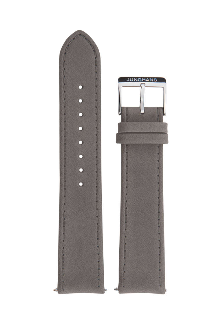 JUNGHANS horlogeband 20 mm velours Grijs leer met titaan gesp, standaard lengte.