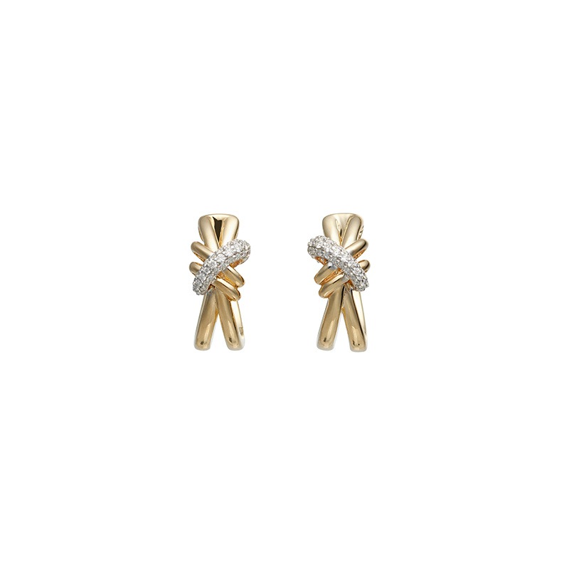 Deze stralende geelgouden klapcreolen hebben een prachtig, uniek design waarbij de creool versierd wordt met een subtiele, moderne knoop. Het knoopje heeft meerdere geelgouden banen waarvan één baan bezet wordt met schitterende diamanten. Om de briljanten optimaal te laten schitteren zijn zij in een witgouden zetting geplaatst. De diamanten hebben een totaal gewicht van 0.29ct. en een kwaliteit van TW/SI. De oorringen sluiten door middel van een scharnier en zijn fantastisch te combineren met andere sieraden.