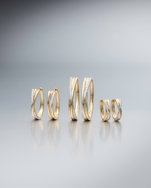 Elegant met een sprankelende touch. Deze 22mm geelgouden creolen zijn mooi rond en vol van vorm. De twee geelgouden banen en de baan bezet met diamanten vormen samen een prachtig cross-over design en geven de oorringen een luxe uitstraling. Om de briljanten optimaal te laten schitteren zijn zij in een witgouden zetting geplaatst. De diamanten hebben een totaal gewicht van 0.25ct en een kwaliteit van TW/SI.
