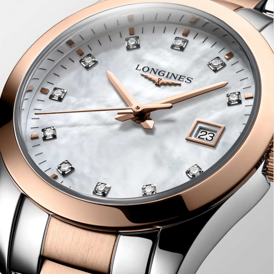 De Conquest collectie belicht de wilskracht van diegenen die een sprong in het diepe hebben gewaagd en geeft uiting aan de geestdrift die het verleggen van bestaande grenzen mogelijk maakt. De ontwerpen uit de Conquest collectie weerspiegelen diezelfde geestdrift sinds 1954. Elk horloge onthult op subtiele wijze een uitzonderlijke combinatie van prestatie en elegantie, gekenmerkt door enorm precieze technische toepassingen.