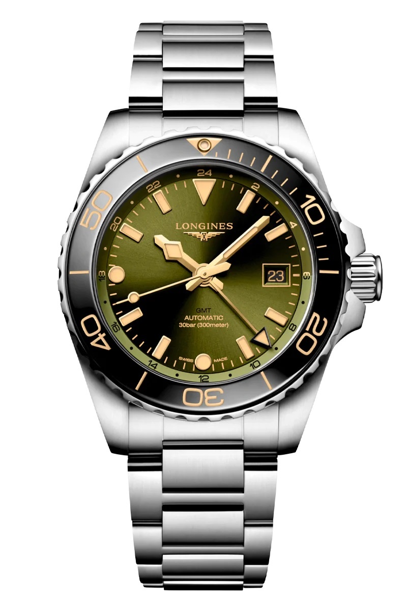 De HYDROCONQUEST-collectie zet de standaard voor sporthorloges. De nieuwe modellen worden aangedreven door een exclusief Longines GMT-uurwerk dat het mogelijk maakt om de tijd in twee tijdzones af te lezen. Het is voorzien van een balansveer van silicium en innovatieve niet-magnetische componenten, die dit kaliber meer dan 10 keer bestendiger maken tegen magnetische velden dan de ISO 764-standaard.
