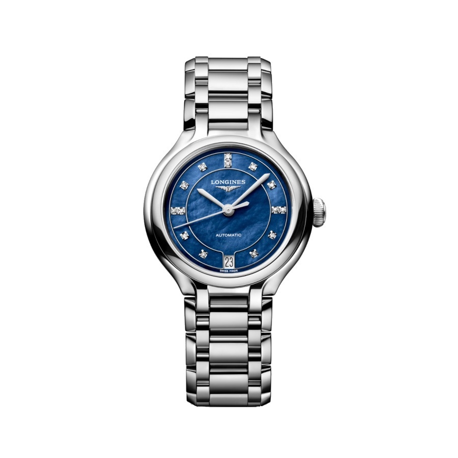 Dit prachtige horloge heeft sierlijke rondingen die ervoor zorgen dat het horloge een elegante en sierlijke uitstraling krijgt. De donkerblauwe wijzerplaat wordt versierd met zilverkleurige wijzers en 14 subtiele, schitterende briljanten indexen. De diamanten hebben een totaalgewicht van 0.06ct. Het horloge heeft een perfecte grootte van 34mm en een soepele stalen band die het horloge helemaal afmaakt. Het horloge heeft een automatisch uurwerk met een gangreserve van 72 uur, een waterdichtheid van 30m en 5 jaar garantie.