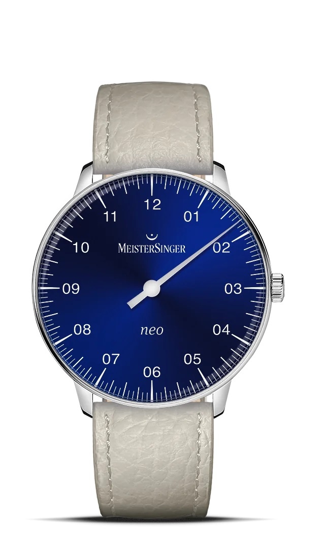 Artikelnummer: NES908De Neo verenigt het design van de jaren 60 met de unieke vormgevingskenmerken van MeisterSinger. De zakelijke typografie met consequent tweecijferige uuraanduidingen van 01 tot 12, de vijfminutenindeling rond de wijzerplaat en ook de enkele uurwijzer met naaldpunt maken het horloge tot een klassieke MeisterSinger. Met een diameter van 36 mm, de smalle kastrand en het gewelfde saffierglas ziet de Neo-kast eruit als een ontwerp uit de jaren 60 van de vorige eeuw. Het compleet nieuwe ontwerp van de kast maakt het ook mogelijk om de waterdichtheid te verhogen tot 5 bar.