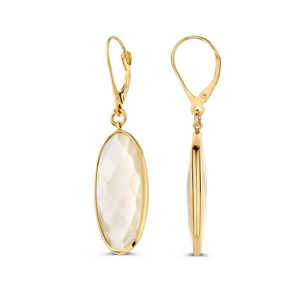 Artikelnummer: 613065Deze geelgouden oorhangers zijn een echt juweel voor in de oren! Schitterende witte Parelmoer gecombineerd met 14k geelgoud.