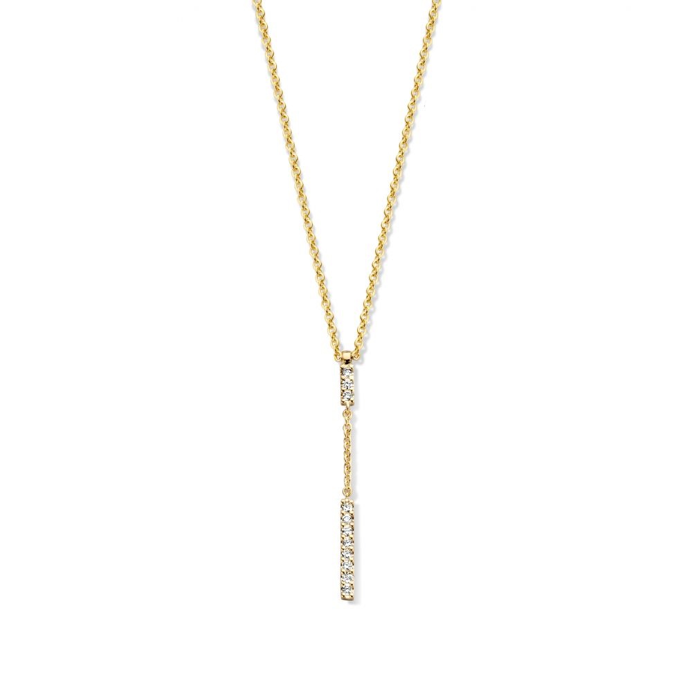 Artikelnummer: 608895Bij MRS.Janssen vindt u speciale sieraden die wij uitzoeken op internationale beurzen. Het collier is in de hals voorzien van een karabijnsluiting en is verstelbaar in lengte. Een prachtig en fijn geelgouden collier met 5 kleine diamantjes gezet in een rond kastje voor vrouwen die iets bijzonders zoeken. De draaglengte van dit collier is 45 cm.