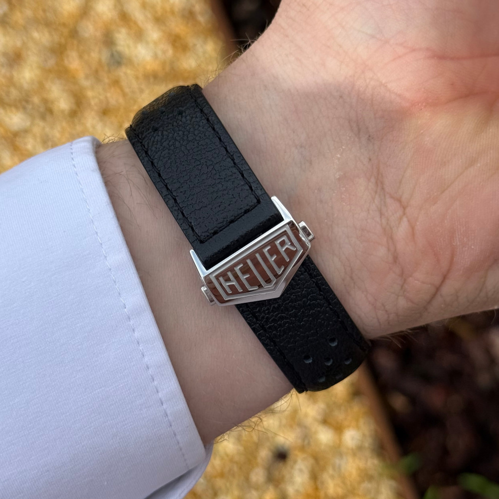 Artikelnummer: CAW211P.FC6356De Tag Heuer Monaco, een icoon, het autosport horloge. In deze uitgave trouw aan het origineel, maar gemoderniseerd, met saffierglas. En een zwarte lederen band met gaatjes, voorzien van een vouwslot. Hét legendarsiche Steve McQueen horloge uit de film Le Mans uit 1971. Een sportief horloge, door zijn rijke historie een talking piece aan je pols.