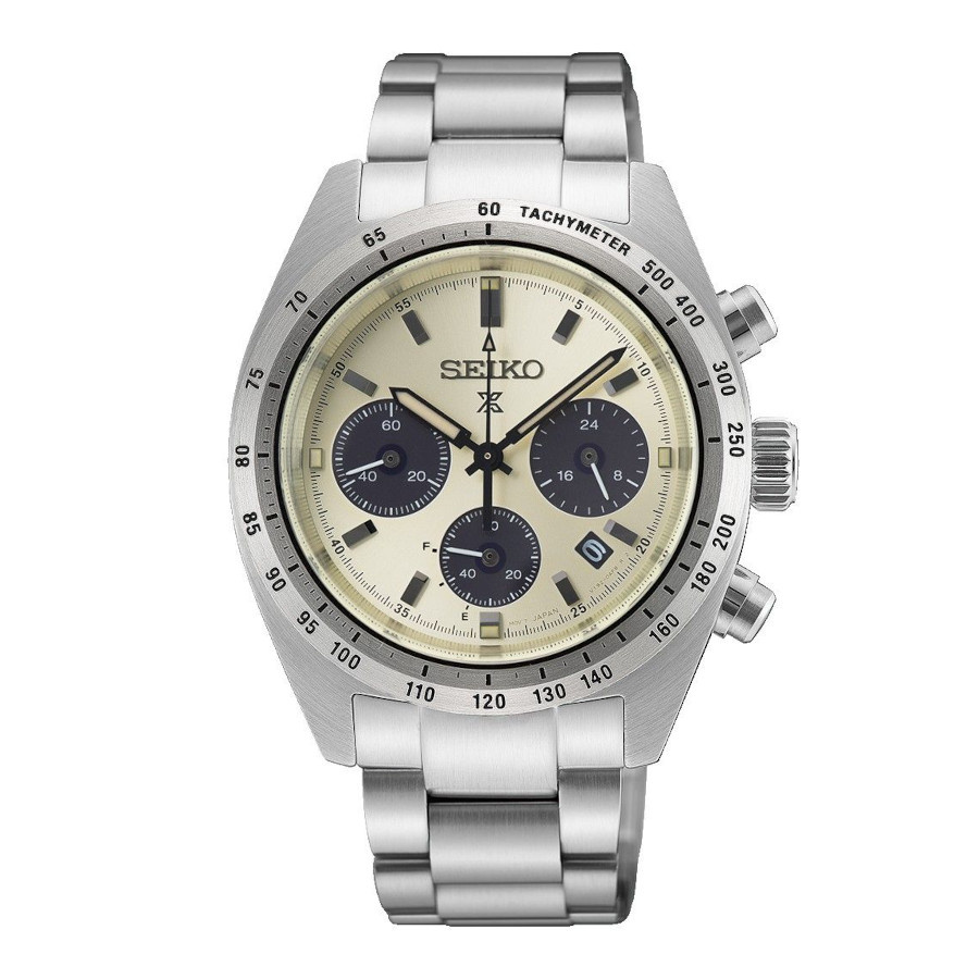 Artikelnummer: SSC959P1Dit Seiko Prospex Solar Speedtimer SSC959P1 heeft een stalen kast van 39mm met beige wijzerplaat en stalen. Dit model is een limited edition met een oplage van 3000 stuks. Dit horloge is nummer 2298/3000.