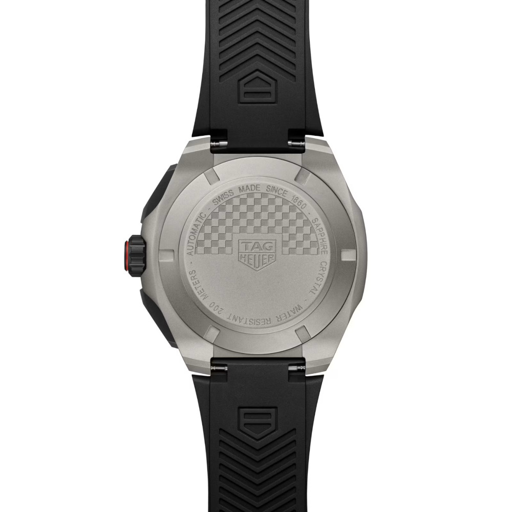 Met zijn rood gelakte spoor roept de zwarte opaal wijzerplaat de energie van nachtraces op. De lichtgevende wijzers en indexen garanderen leesbaarheid, terwijl de DLC-gecoate tachymeter bezel, met een aluminium inzetstuk, de sterke motorsporttraditie van het horloge benadrukt.