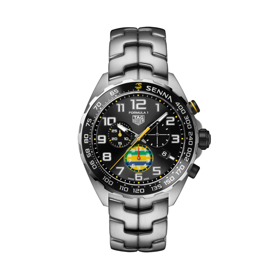 Gelanceerd tijdens de Braziliaanse Grand Prix™, combineert deze speciale editie de iconische kleuren van de legendarische coureur met een high-performance design. De zwarte sunray-geborstelde wijzerplaat, met gele, rode, groene en blauwe accenten weerspiegelt de iconische kleuren die geassocieerd worden met Senna’s buitengewone race-erfgoed. De 43mm kast, vervaardigd uit fijn geborsteld en gepolijst staal is gecombineerd met een zwarte aluminium tachymeter lunette met het kenmerkende logo van Senna. De stalen schroefbodem is voorzien van een speciale gravure, die de sterke band tussen TAG Heuer en de racelegende benadrukt. Geïntroduceerd in 1987, is de S-vormige band een kenmerk van TAG Heuer en favoriet bij Ayrton Senna vanwege de comfortabele pasvorm en unieke dubbele schakelstructuur. Het ergonomische ontwerp garandeert zowel stijl als comfort, waardoor deze chronograaf perfect is voor dagelijks gebruik en het een must-have is voor alle racefans.