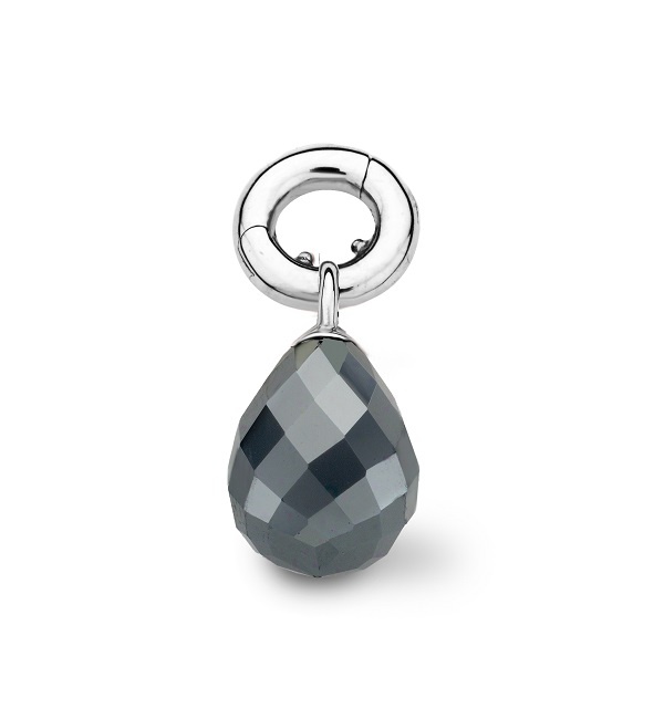 Deze schitterende bedel maakt je Tirisi Moda armband helemaal af. Een witgouden clip houdt een de Hematiet stevig vast. De edelsteen is in een druppelvorm en facet geslepen. Prachtig om solitair te dragen maar perfect om te combineren met andere bedels aan je lederen armband.