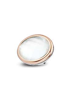 Deze schitterende bedel maakt je Tirisi Moda armband helemaal af. Een zilveren, gerhodineerde schuif element met een facet van parelmoer en daaromheen een 18k roségouden zetting. Prachtig om solitair te dragen maar perfect om te combineren met andere bedels aan je lederen armband.