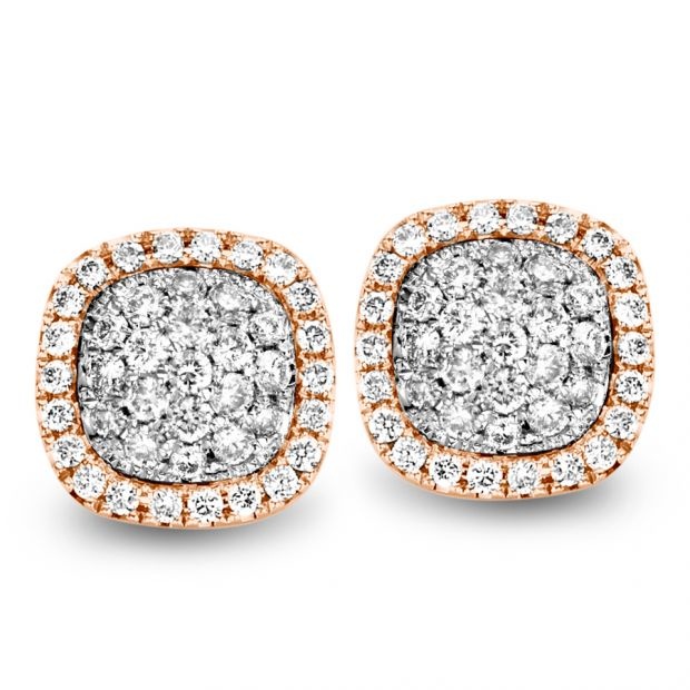 Deze luxe oorstekers vallen perfect op het oor. Een witgouden kussentje bezet met briljant met daaromheen een fijne roségouden rand gezet met briljant. In totaal zit er 0.44ct diamant in deze oorbellen verwerkt.