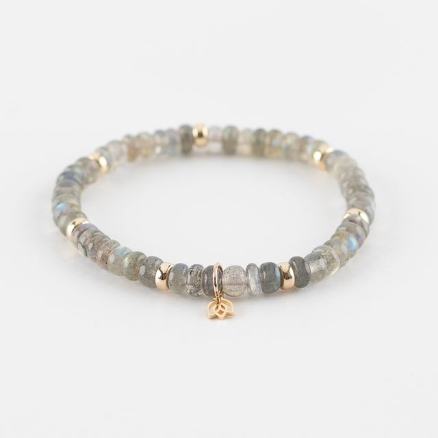 Deze prachtige armband is een combinatie van Labradoriet en geelgouden ornamenten.