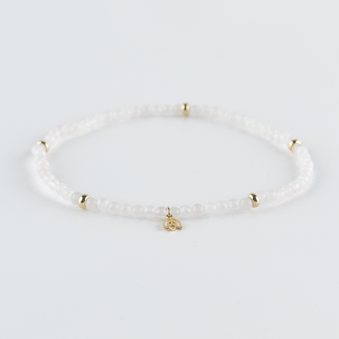 Dit prachtige enkelbandje is een combinatie van Rozenkwarts en geelgouden ornamenten.